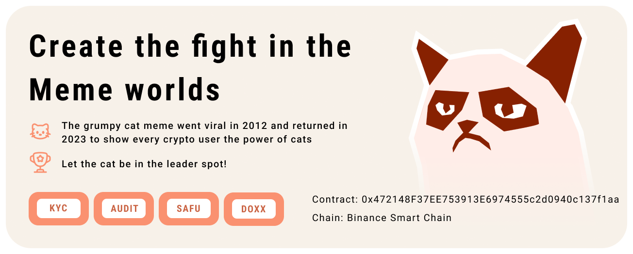 Inspired by the iconic Grumpy Cat, our token embraces the spirit of memes and fosters a community built on shared humor and playful engagement. Join us on this exciting journey as we explore the concept, features, and vision of the Grumpy Cat Meme Token.